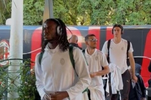 北京时间5月15日凌晨3时,意大利杯决赛将在罗马奥林匹克球场举行,由米兰对阵博洛尼亚。当地时间本周一,米兰全队一起出发前往罗马,包括本场比赛因伤缺席的邦多、索蒂尔等伤员也随队出征。在罗马酒店门口还有一些米兰球迷迎接球队,而赖因德斯、特奥是最受欢迎的米兰球员。